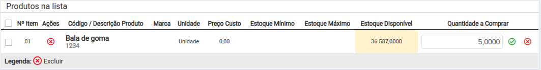 Ao clicar em para Salvar, o sistema irá atualizar a quantidade de produtos a comprar para a quantidade informada.