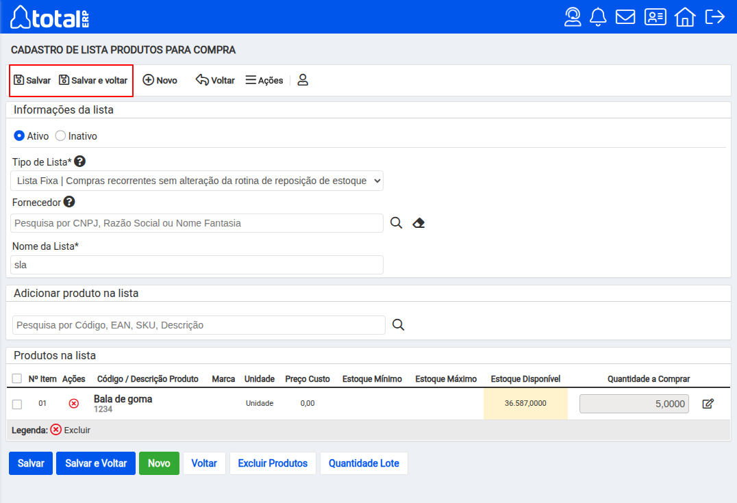 Após realizar o preenchimento necessário, clique em “Salvar” ou “Salvar e Voltar” caso queira retornar à tela inicial do Gerenciar Listas.