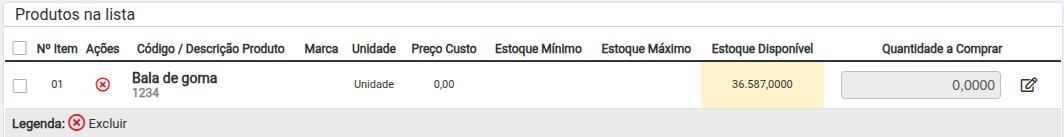 Ao clicar no icone em Quantidade a comprar será liberado o campo para edição sendo necessário inserir a quantidade dos produtos que deseja adicionar na lista de compra. Ao inserir a quantidade desejada clique em