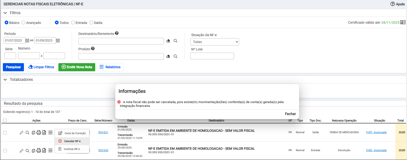 Se você está enfrentando alguma destas mensagens abaixo, para cancelar um lançamento financeiro, comercial ou fiscal, este artigo irá explicar como solucionar: