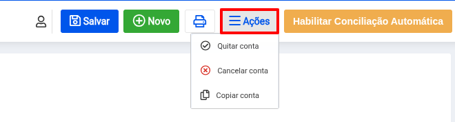 Observação Importante: As movimentações de quitação lançadas somente serão salvas ao salvar o cadastro da conta.