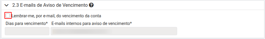 7 - Calcular acréscimos: Nesse campo é possível inserir uma porcentagem mensal de acréscimos a ser aplicado após o vencimento da conta.