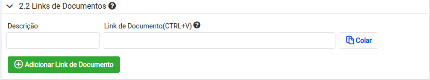 1 - Tipo: Neste campo é possível selecionar qual o tipo de documento será inserido. Existem as seguintes opções: