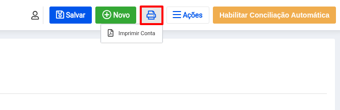 Observação: Esse campo não é de preenchimento obrigatório, porém é recomendado selecionar uma conta bancária ou caixa para gerar relatórios com as informações, e para facilitar na quitação de sua conta.