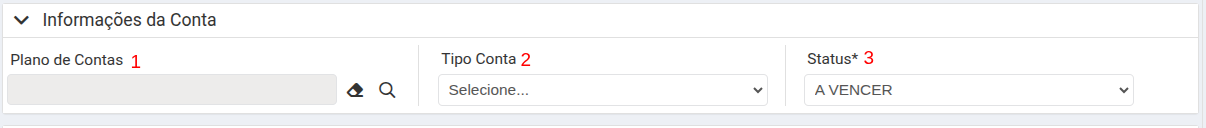2 - Tipo Conta: Neste campo é possível selecionar o tipo de conta que está sendo gerada, como por exemplo, Despesa, Receita, etc.