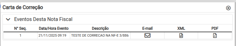 Após realizar o procedimento é possível realizar download do PDF e do arquivo XML da carta de correção, realizando os seguintes passos.