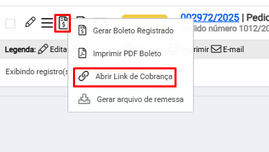 Para isso, na mesma tela de Gerenciar Contas a Receber acesse o ícone de dados de cobrança e selecione