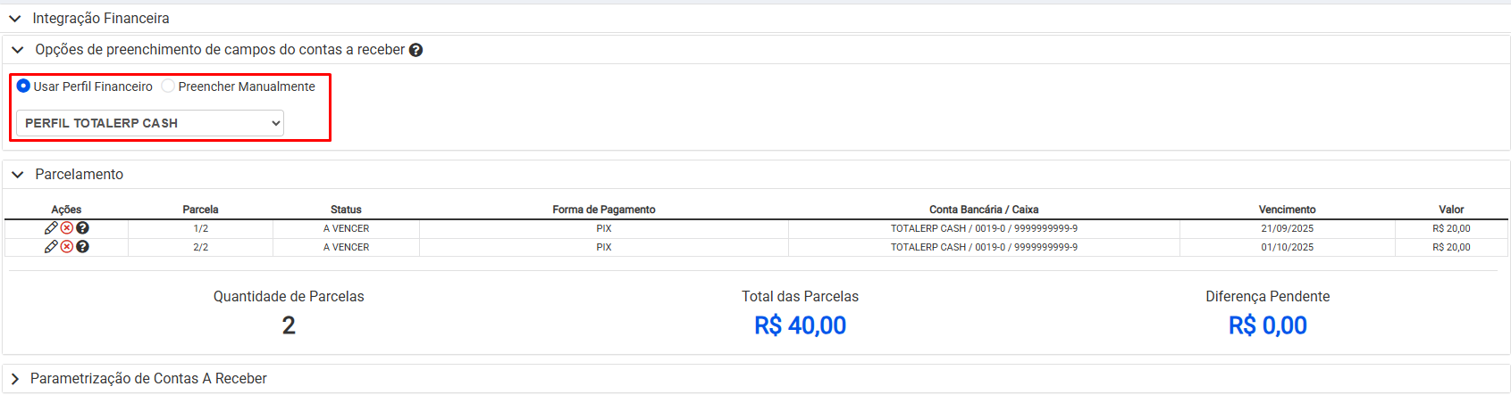 tro do perfil financeiro serão lançados automaticamente nessa venda, note.