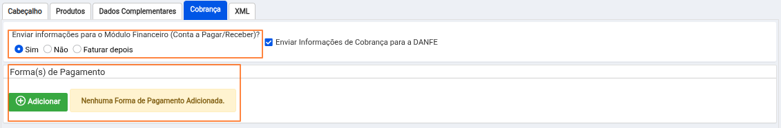 No item Cobrança, é possível colocar a quantidade de parcelas para aparecer na DANFE e no XML.