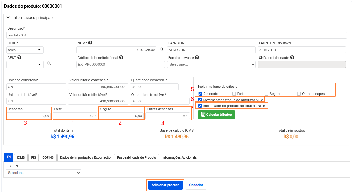 4 – Outras Despesas: Nesse campo é informado outras despesas sobre o valor do produto.