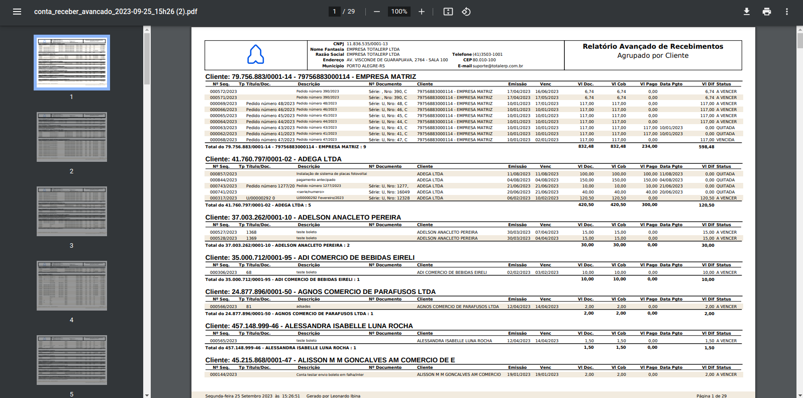 Exemplo de Relatório em PDF: