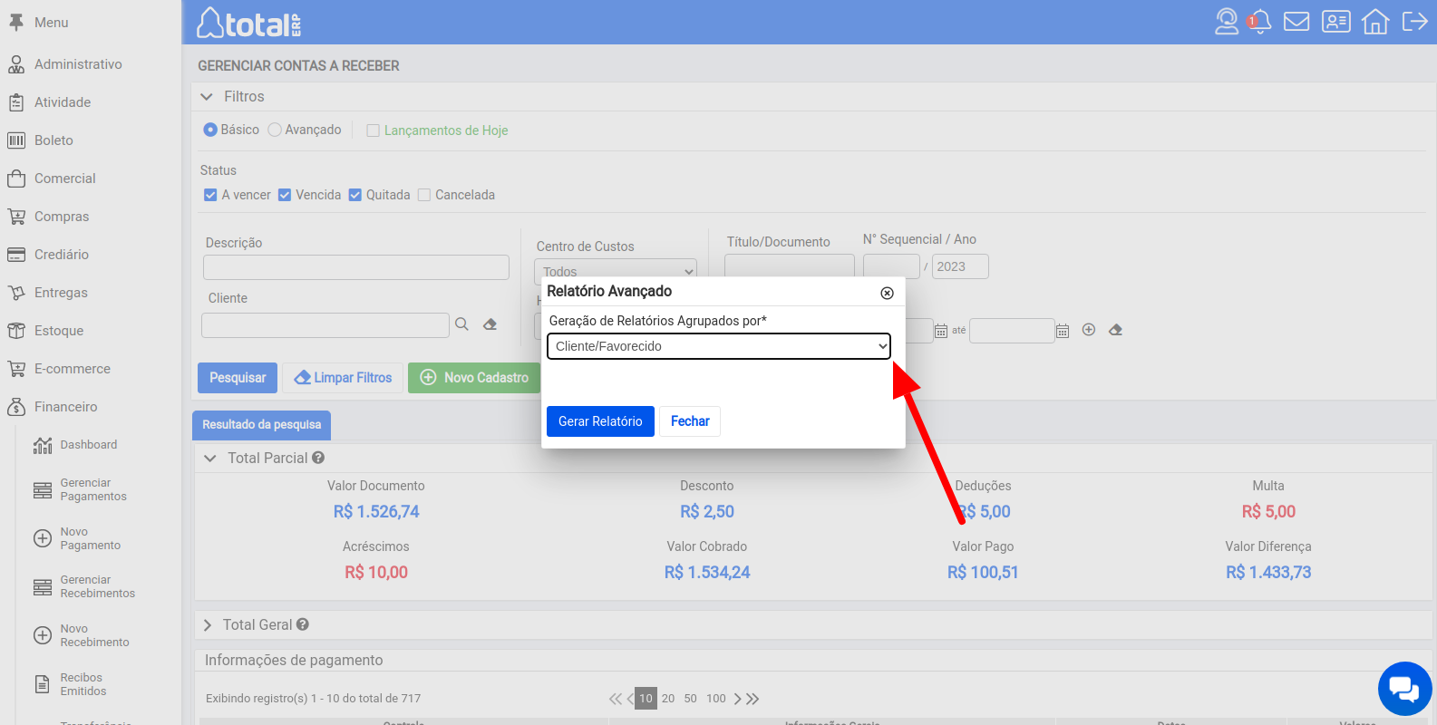 14 - Gerenciar Pagamentos/Recebimentos - Relatórios Avançados - Cliente/Favorecido