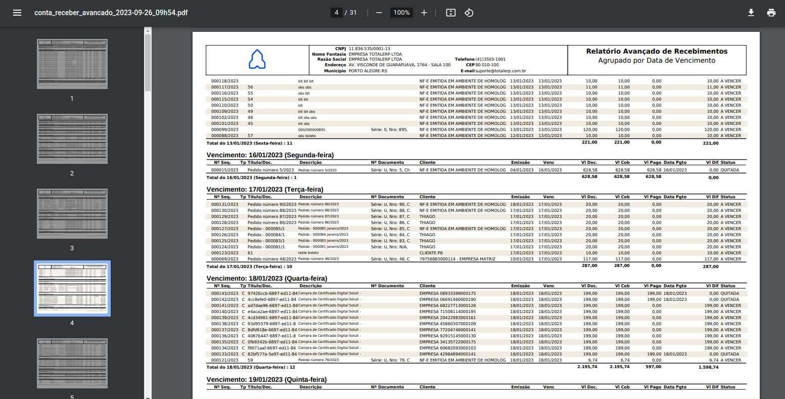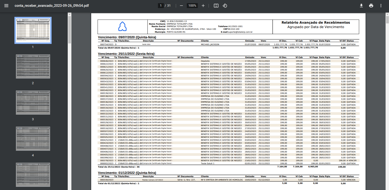 16 - Gerenciar Pagamentos/Recebimentos - Relatórios Avançados - Data de Vencimento