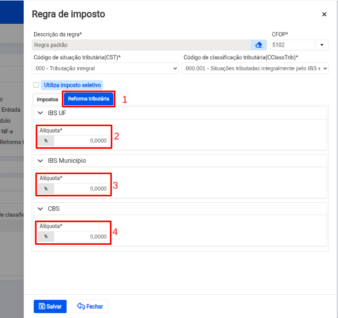 Como sei quais alíquotas devo preencher no IBS e CBS?